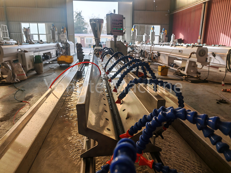 (2) ce réservoir de refroidissement par eau de 6 mètres fournit un refroidissement rapide et uniforme pour stabiliser la structure du tuyau et maintenir la précision dimensionnelle après l'extrusion.