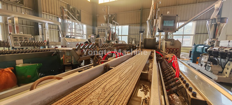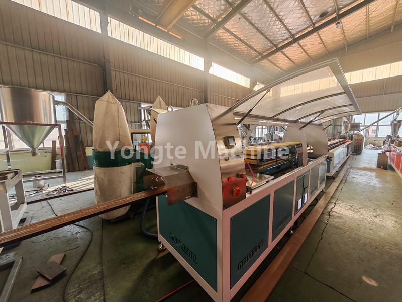 La ligne de coextrusion de terrasses Yongte WPC avec équipement de gaufrage 3D en ligne est testée avec succès