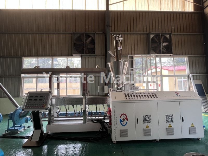 La machine de fabrication de granulés Yongte WPC comprend un système d'alimentation, un système d'extrusion à double vis parallèle, un système de granulation à chaud, un système de refroidissement par soufflage et un système de stockage de matériaux.