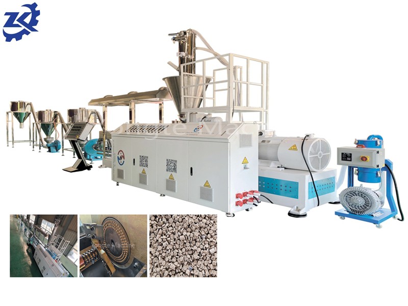 Le mélange est transporté vers la machine de granulation WPC Yongte par chargeur à vis ou chargeur à vide. La machine à granulation WPC est équipée d'une extrudeuse à double échelle parallèle à haute efficacité spécialement conçue pour la composition en plastique en bois, un système à granulé chaud à haute vitesse ou un système de concassage et un système de refroidissement à l'air rapide à trois étapes. Le rapport de poudre de bois peut atteindre 60 à 70%, et les pastilles WPC produites sont uniformément mélangées et bien plastisées pour assurer la qualité du produit final.
