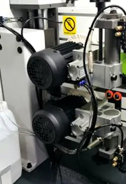 Pré-frappage : Surface du chant du panneau sans aucune imperfection avant l'opération de collage. Il utilise 2 outils à rotation opposée et à intervention temporisée qui, lors de l'opération de retrait, corrigent les imperfections du panneau causées par le processus de coupe à la scie et le stockage du panneau. |
