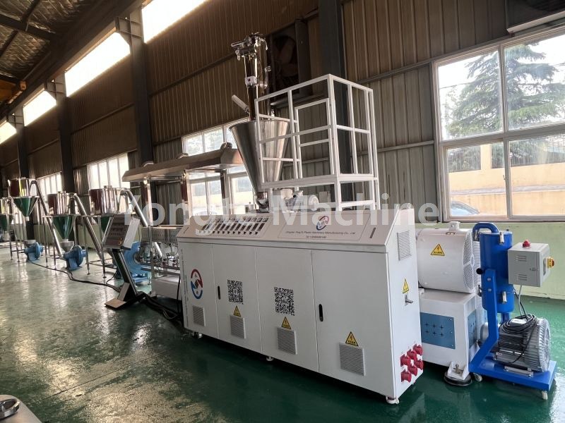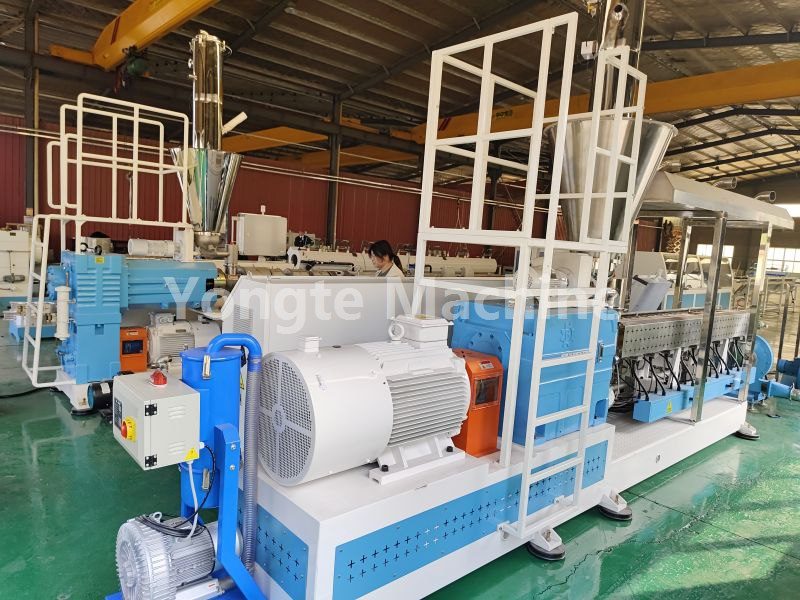 La machine de fabrication de granulés Yongte WPC comprend un système d'alimentation, un système d'extrusion à double vis parallèle, un système de granulation à chaud, un système de refroidissement par soufflage et un système de stockage de matériaux.